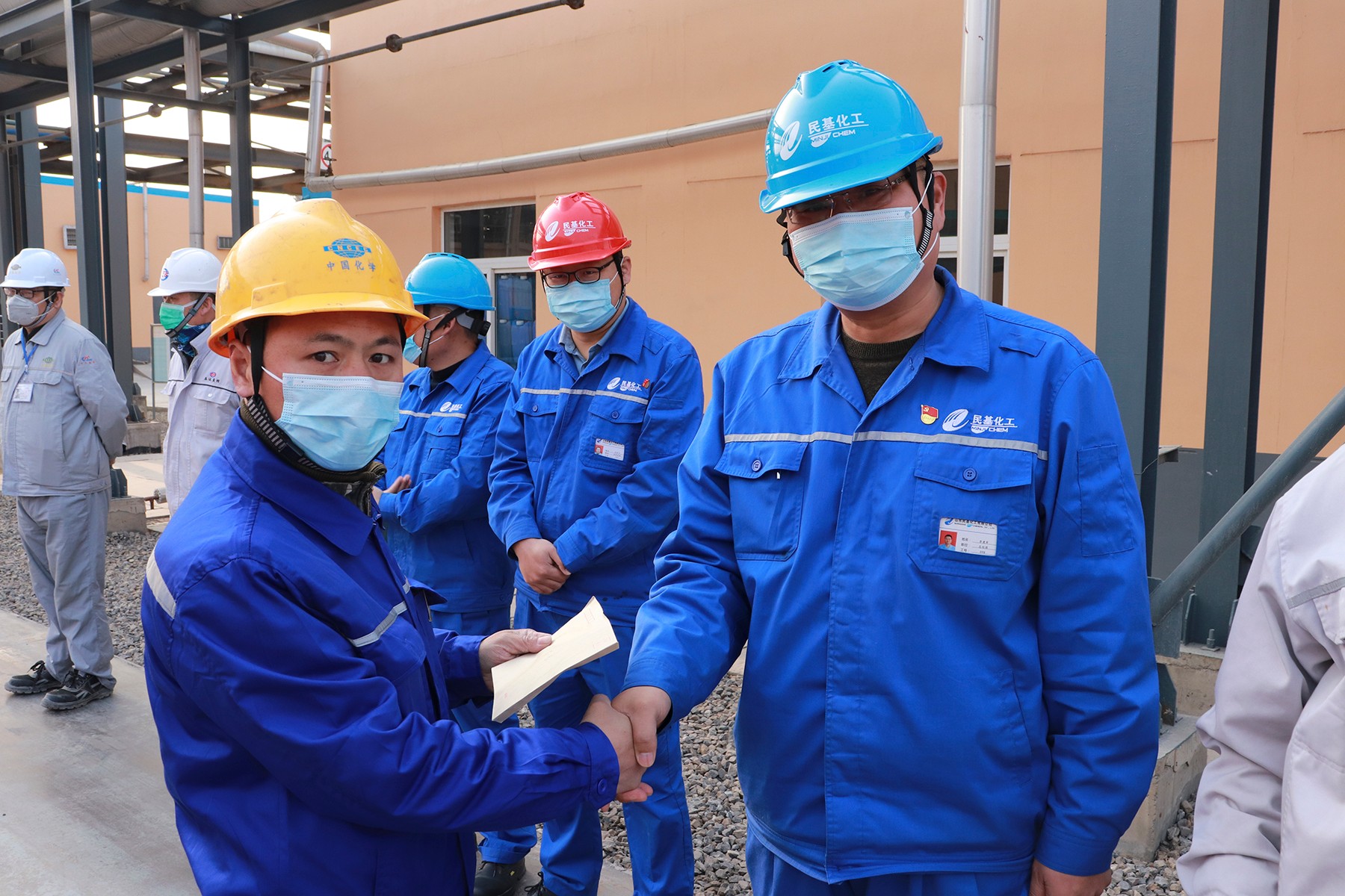 民基化工李建軍總經(jīng)理在致辭中對項目部全體干部職工卯足干勁打硬仗、越是艱難越向前的“鐵軍”作風(fēng)和過硬本領(lǐng)表示贊賞;對項目部細化措施抓疫情防控、倒排工期抓項目建設(shè),確保兩手抓兩手硬兩不誤兩促進的“雙線作戰(zhàn)”方案和施工安排給予充分肯定。他表示,民基化工與十六化建合作基礎(chǔ)深厚堅實,成果豐碩,前景喜人?!靶值芡?、其利斷金”,雙方完全有條件、有能力、有信心克服困難,攜手聚力,共同推動項目如期竣工投產(chǎn)。